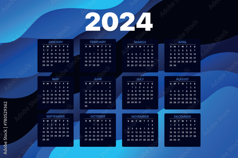 2024 Calendar Horizontal Dark Blue Gradient Stock Vector Adobe Stock