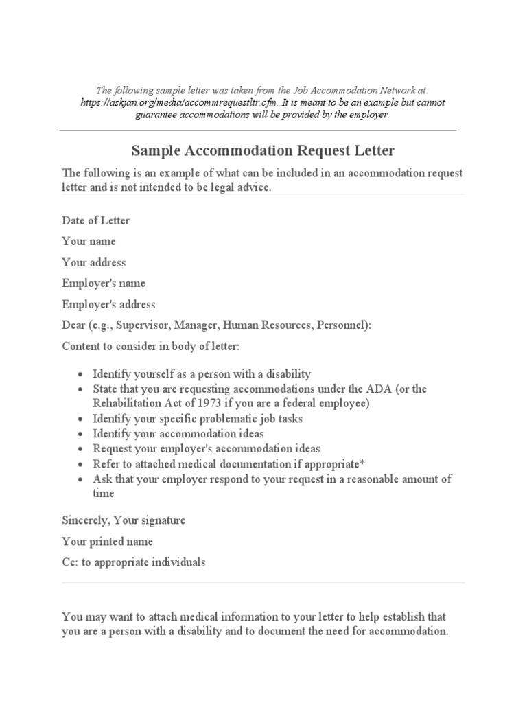 I have pain in my lower back. One way to document an accommodation request is to make a written request. I am writing this letter to submit a request for accommodations in the workplace. Dear [recipient's name], i hope this letter finds you well. In this article, we ll explore a straightforward letter template to help you secure the accommodations.