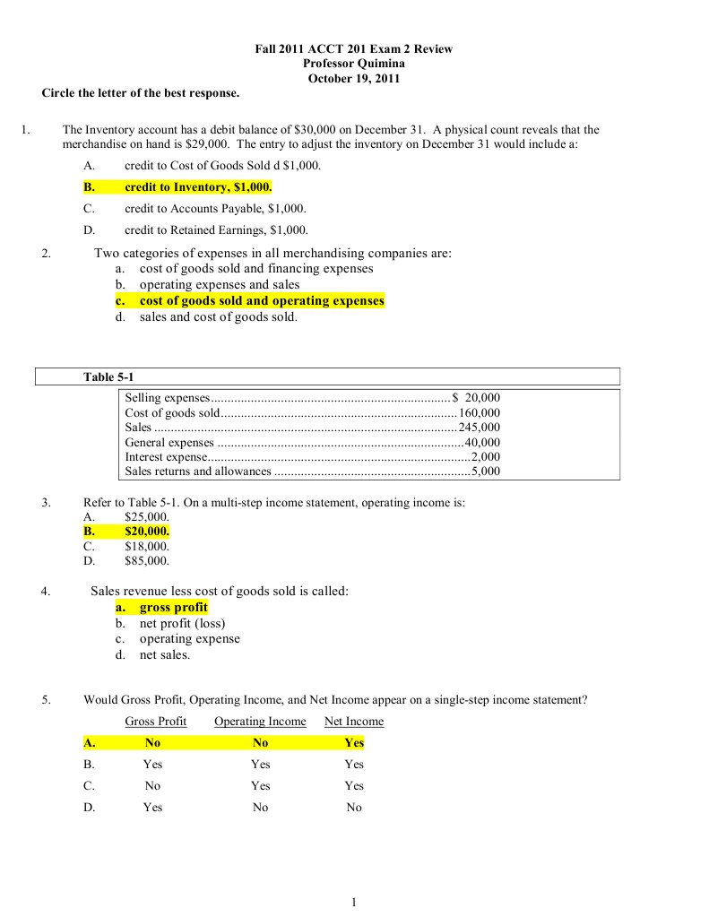 ACCT 201 Exam II Review Answers PDF Debits And Credits Expense