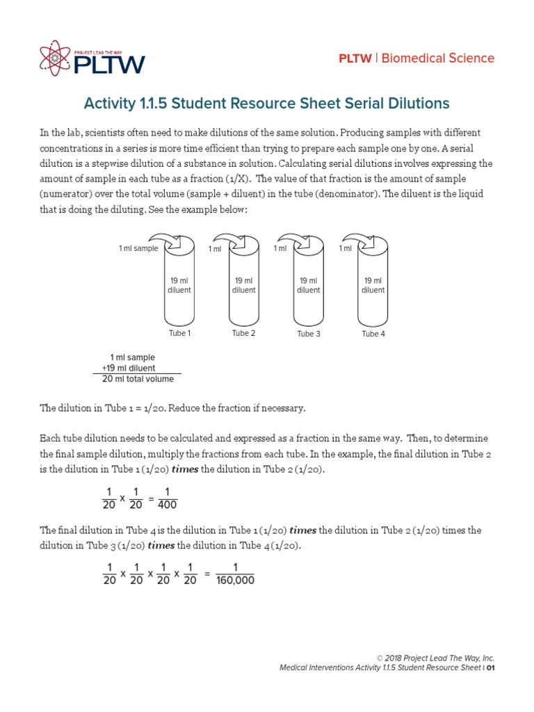 Activity 1.1.5 Student Resource Sheet Serial Dilutions PLTW