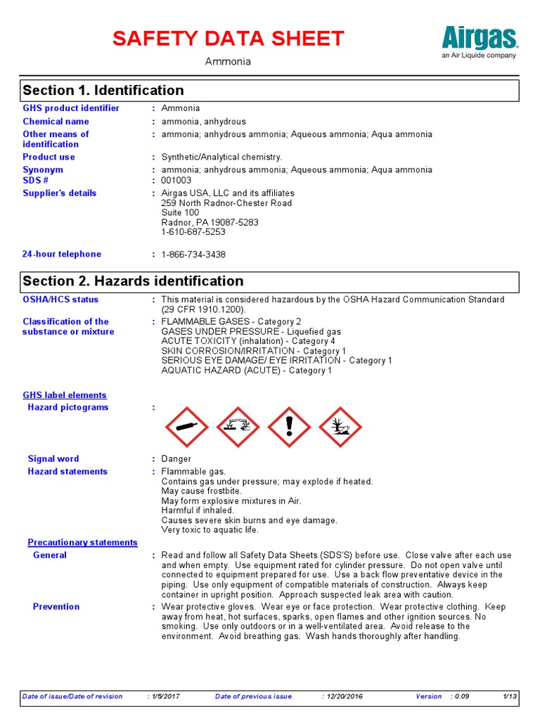 Ammonia Msds Sheet - Material safety data sheet (msds) ammonia (please ensure that this msds is received by the appropriate person) Code of federal regulations 29 cfr 1910.1200, hazard communication. Show this material safety data sheet to the doctor in attendance. Is an irritant, and corrosive to skin, eye, respiratory tract and mucous membranes. First aiders need to protect themselves. Anhydrous ammonia reacts with moisture in mucosal surfaces (eyes, skin, and respiratory tract) to produce.