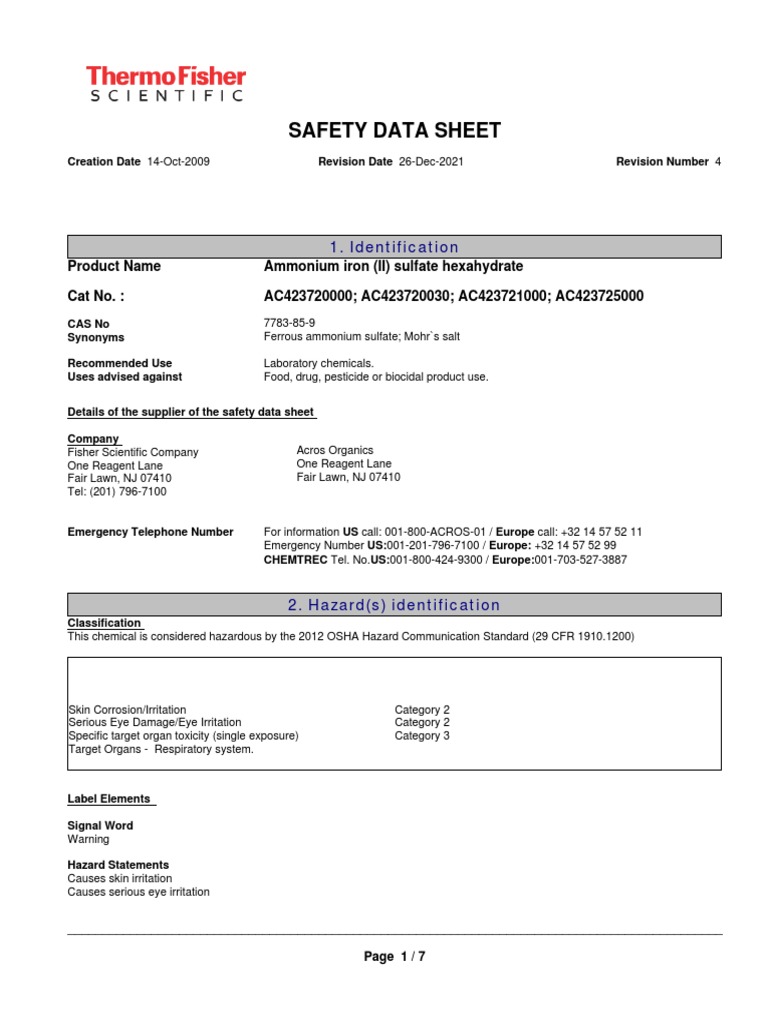 Msds Ferrous Ammonium Sulfate Personal Protective Equipment Waste