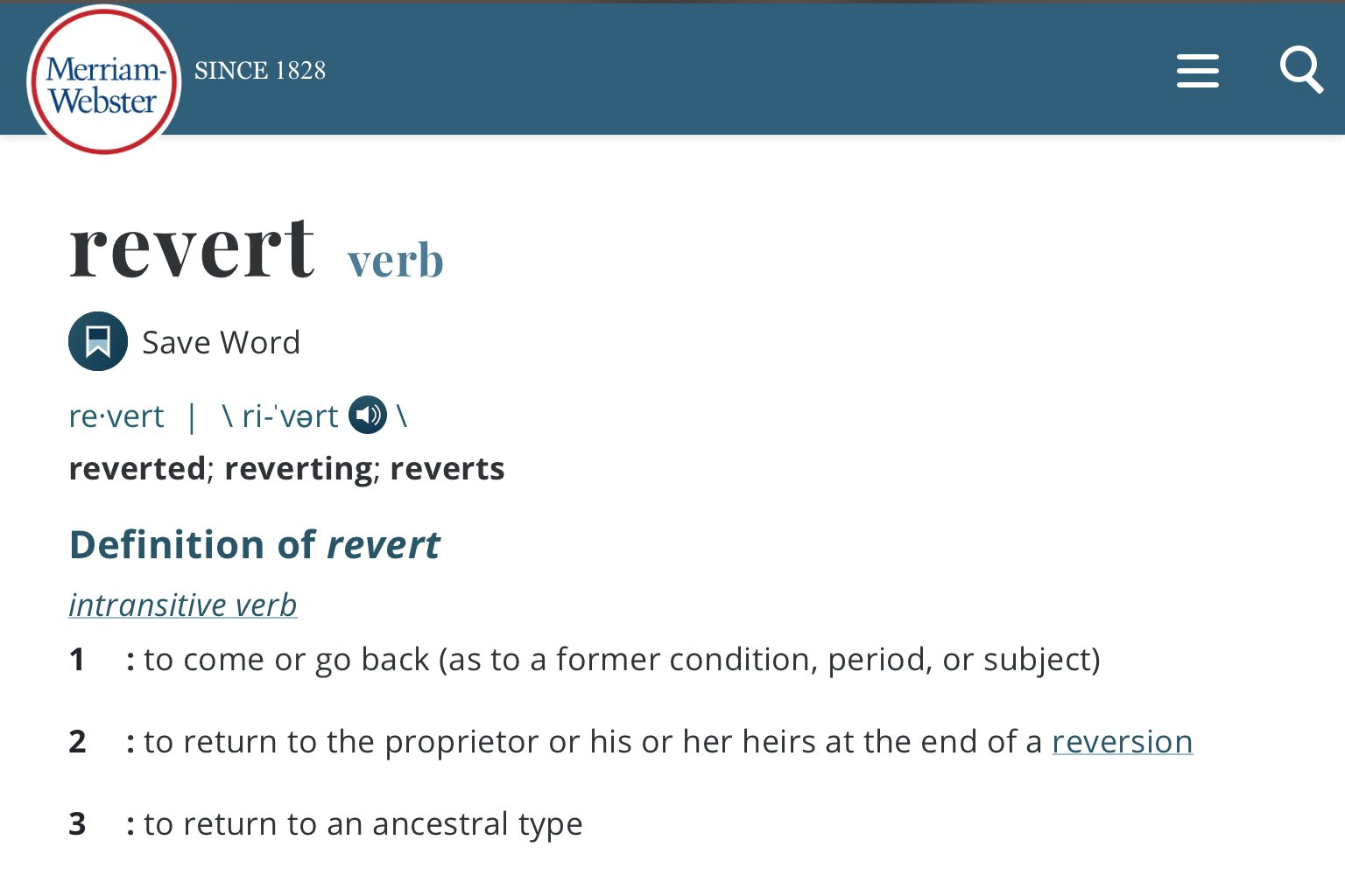 Find 14 different ways to say reverting, along with antonyms, related words, and example sentences at thesaurus.com. Or, go to the definition of revert.