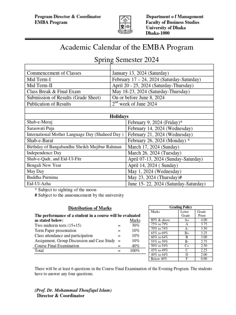 Academic Calendar Spring 2024 PDF Academic Term Bangladesh