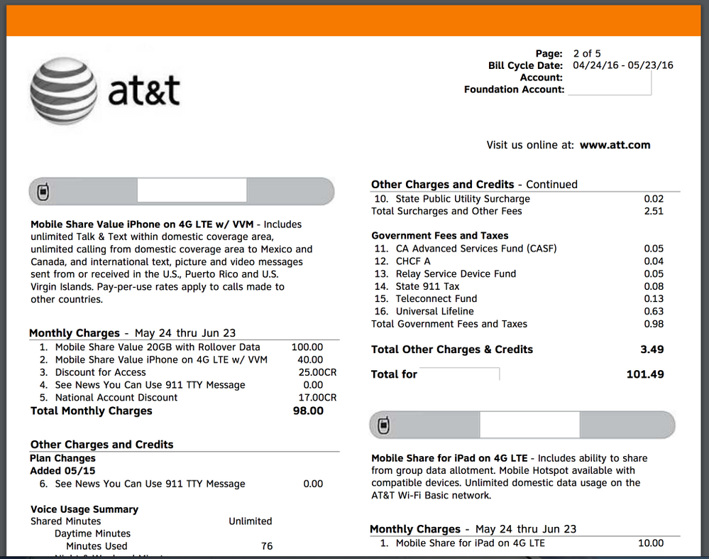 Segregating your phone bill a sample AT&T bill Chico Taxpayers