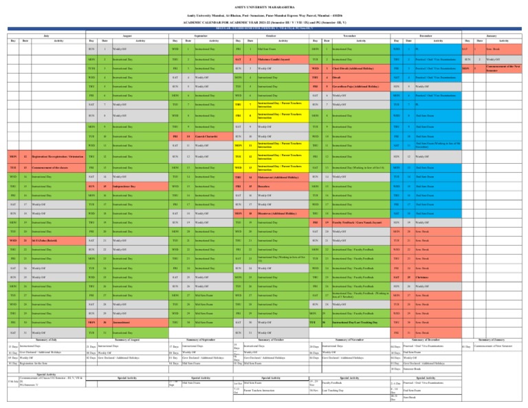 AUM Academic Calendar Odd Sem 202122 (1) PDF Academic Term Schools