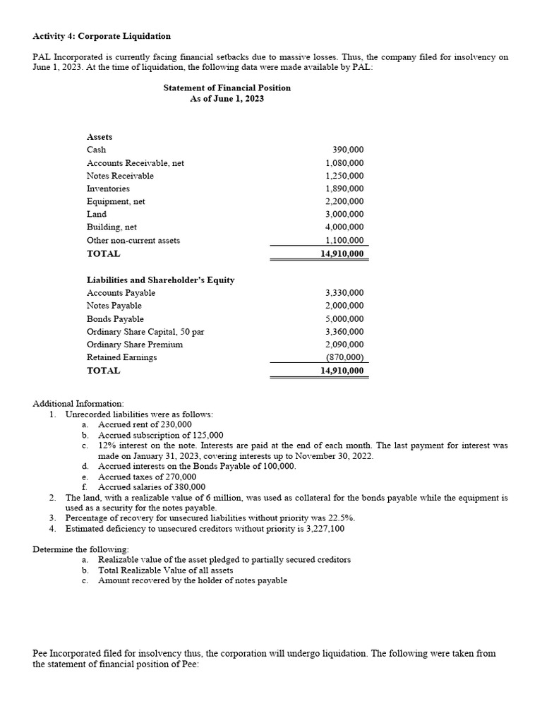 Activity4CL PDF Balance Sheet Bonds (Finance)