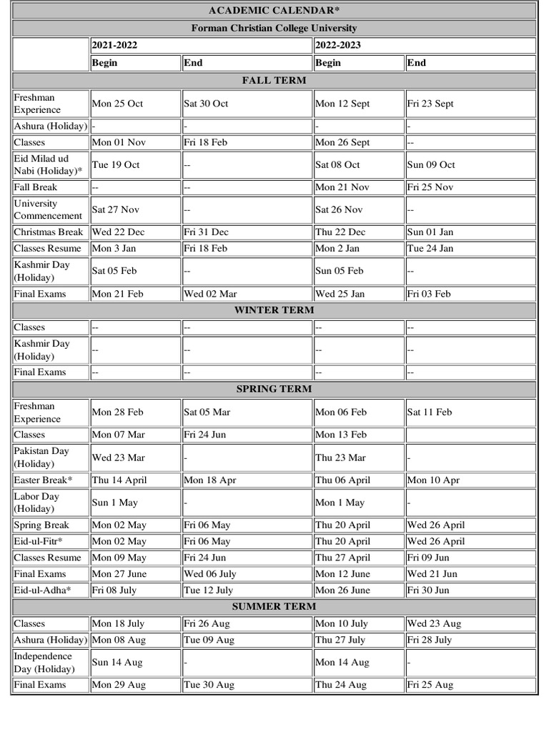 Academic Calendar 2022 23 PDF Academic Term Holidays