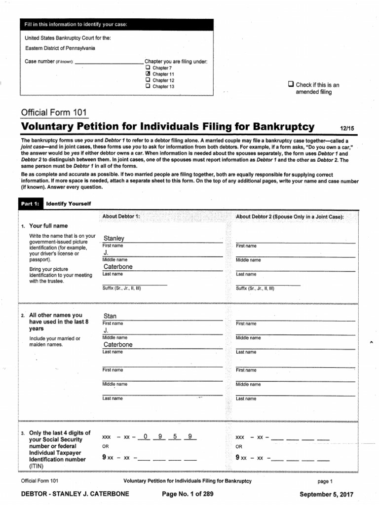 FINAL SIGNED Stan J. Caterbone Chapter 11 Bankruptcy NEW Case