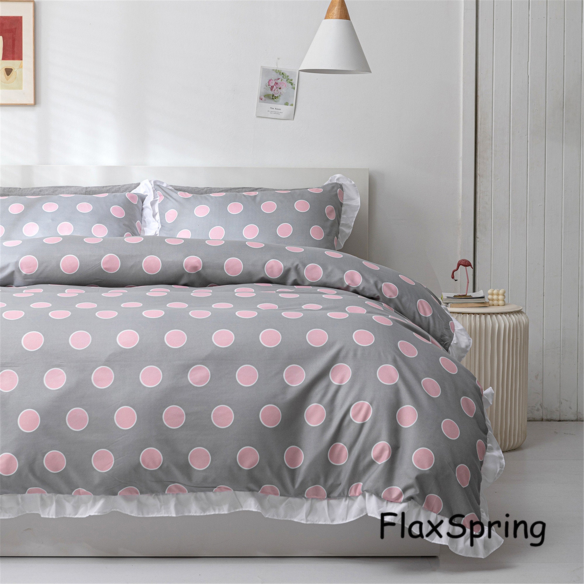 Pink Polka Dots Bedding Set White Ruffle Duvet Cover Set Etsy
