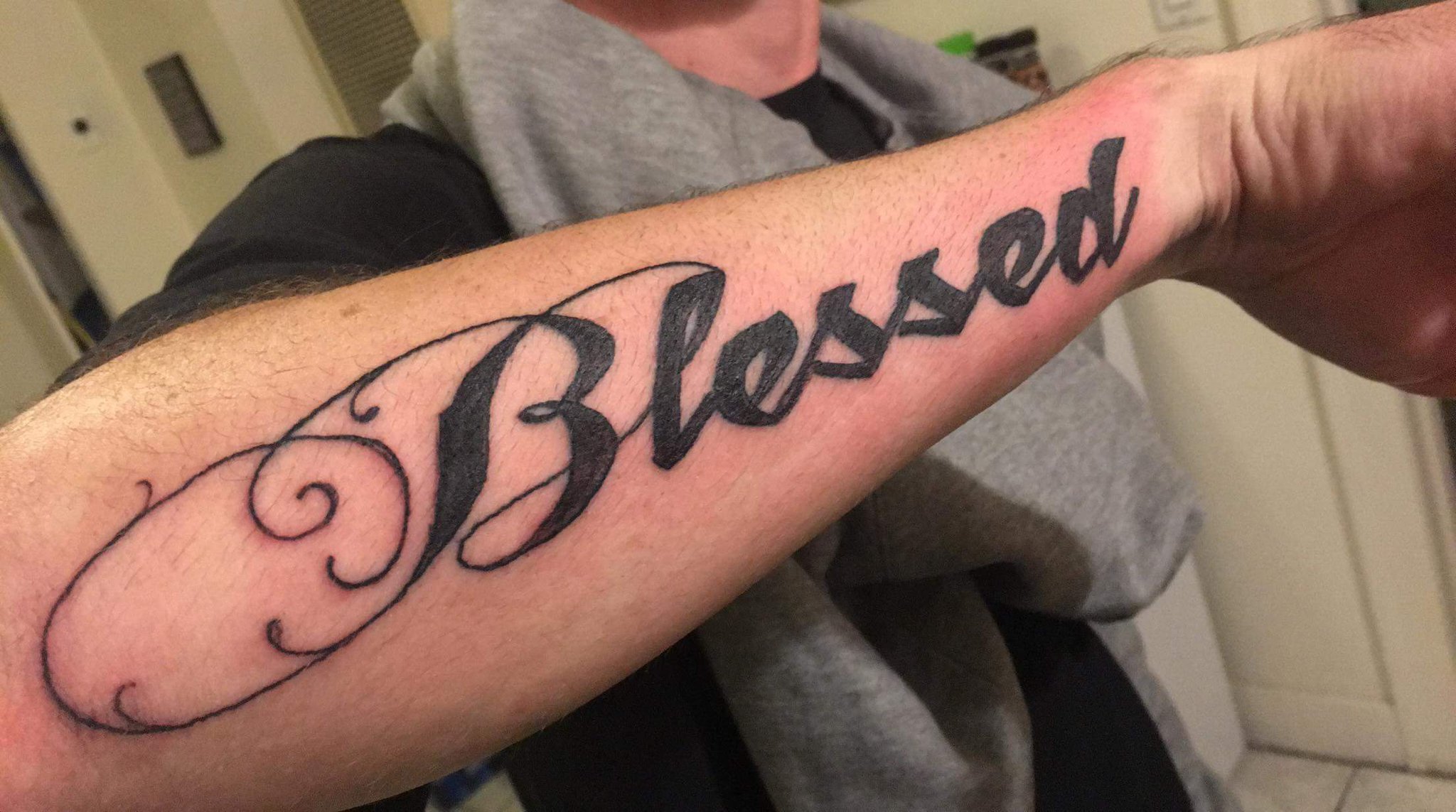 Blessed Script Tattoo by Stefanee Schofield Tattoos