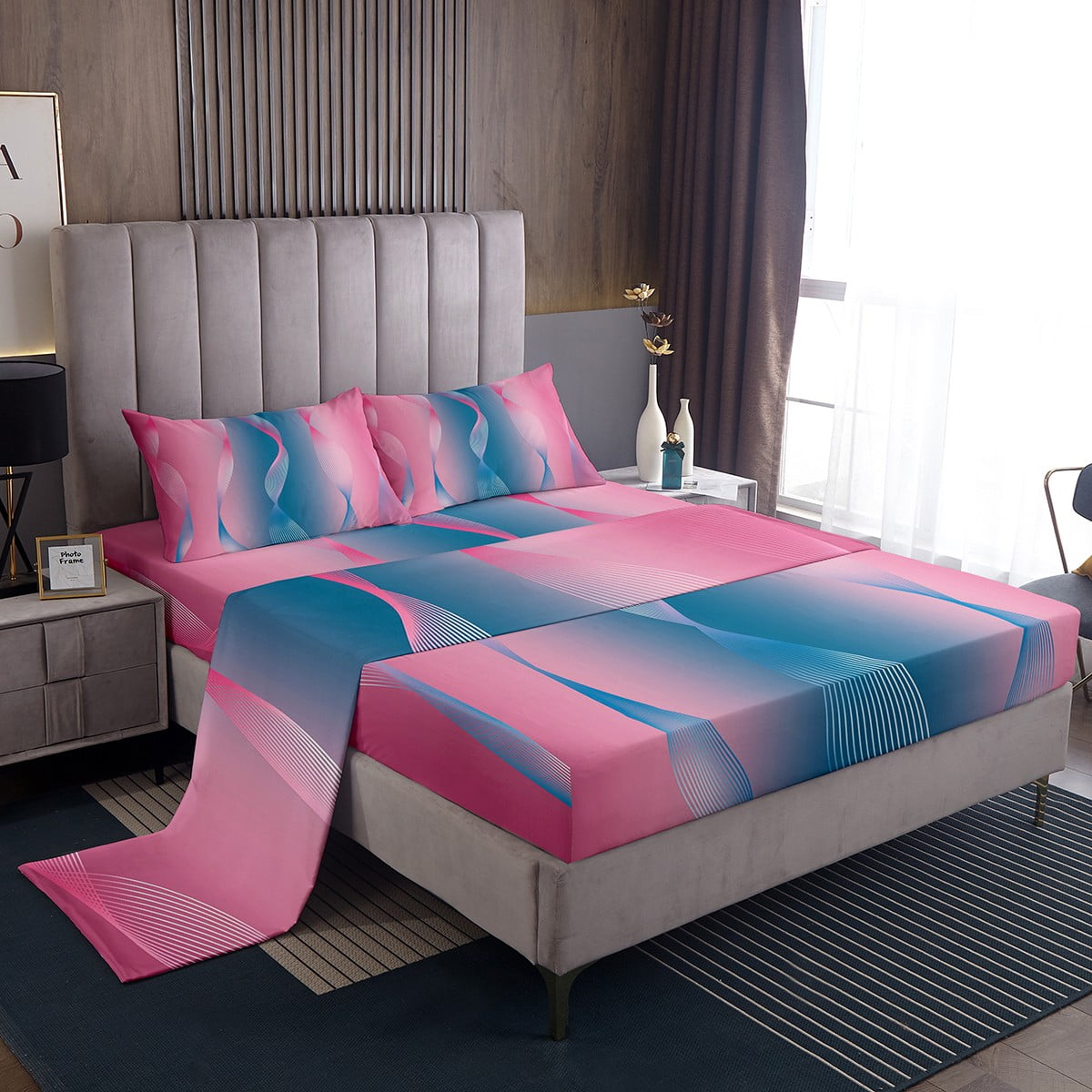YST Gradient Blue and Pink Sheet Sets for Girls,Irregular Silver Stripe