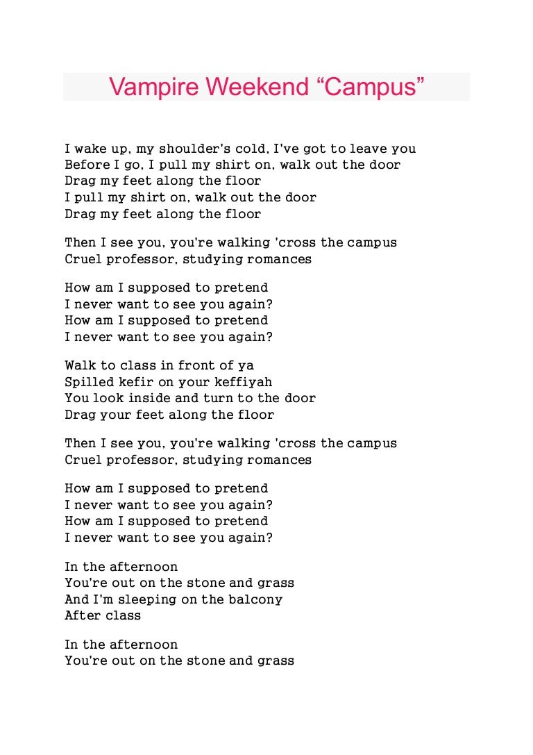 Campus Vampire Weekend Sheet Music - Share, download and print free sheet music of campus vampire weekend for piano, guitar, flute and more with the world's largest community of. Find vampire weekend titles available from sheet music plus. Browse by instrument, genre, format, and more.