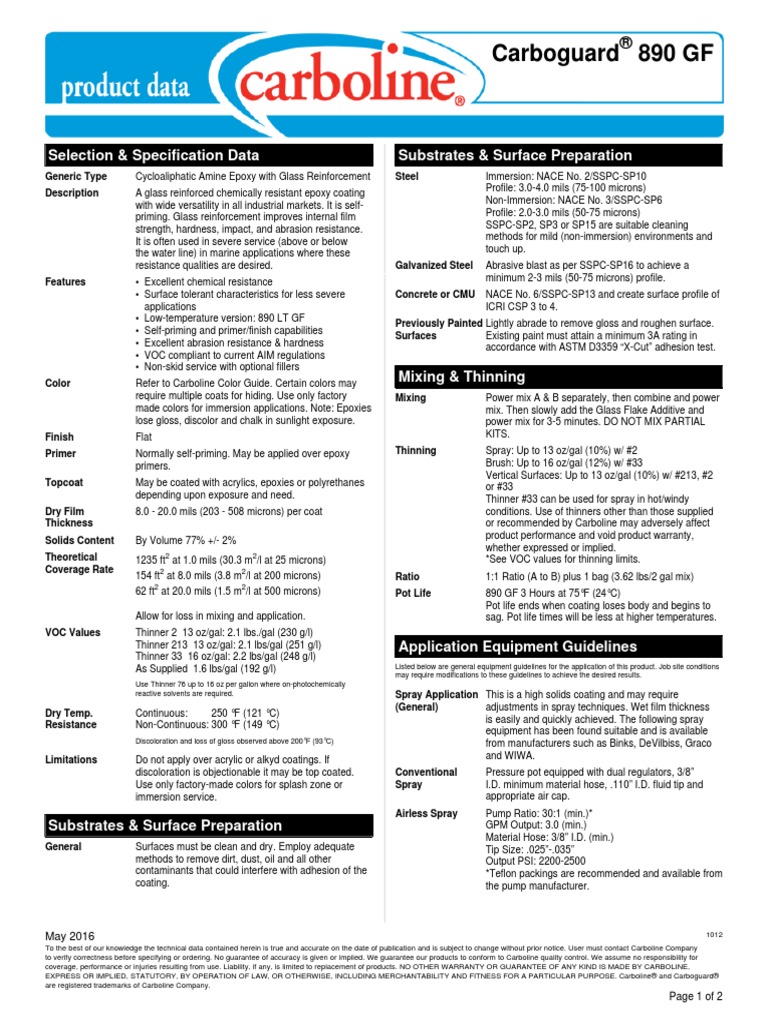 Carboguard® 890 product data sheet april 2024 0986 page 1 of 5 selection & specification data generic type. Download the product data sheet for carboguard 890 and 890 lt, cycloaliphatic amine epoxy coatings with excellent chemical resistance. Highly chemical resistant epoxy mastic coating with exceptionally versatile uses in all industrial markets. Highly chemical resistant epoxy mastic coating with exceptionally versatile.