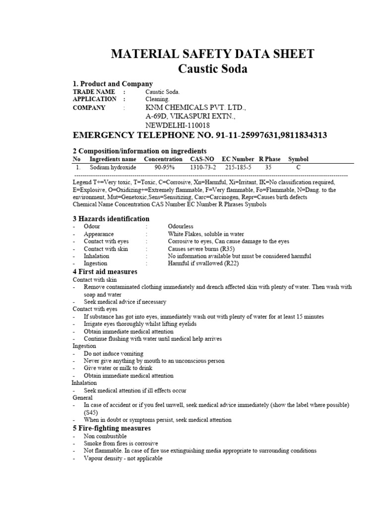 PDF) Material Safety Data Sheet (MSDS) Caustic Soda, 60 OFF