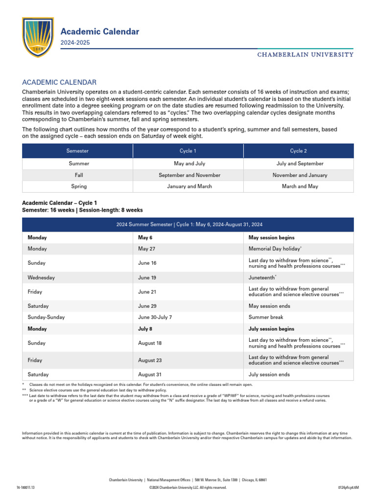 Chamberlain University Calendar 2024 2025