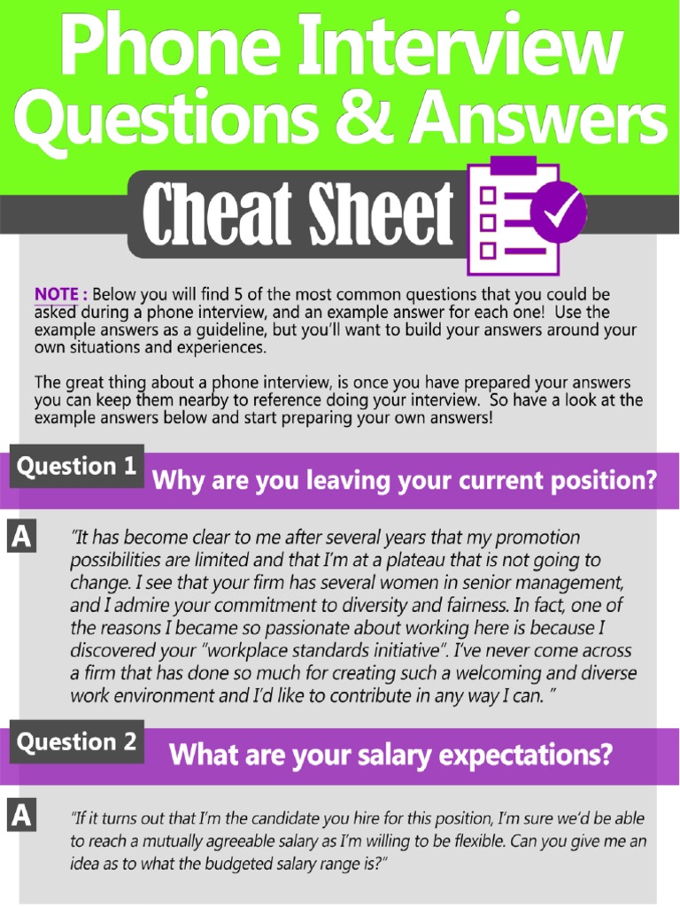 How did you deal with the situation? Learn about what an interview cheat sheet is, why you need one, important tips for a successful phone interview, and how to create. This cheat sheet will guide you in getting ready for your phone interview and making a good impression. Why do you want to work here?