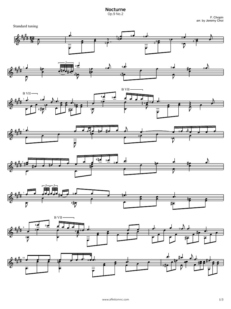 Chopin Nocturne Op9, No2 Sheet music for Guitar