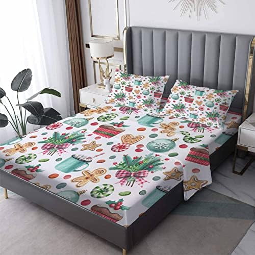 ILVOE Christmas Sheets King Size 4PC, Soft Printed Christmas Microfiber