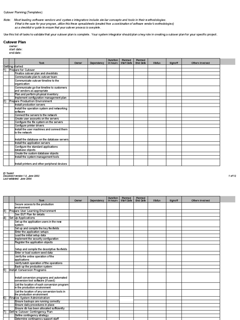 Learn how to create and use a cutover detailed plan document to manage, understand, and. Use this cutover plan spreadsheet in conjunction with the cutover strategy presentation, which. A cutover plan template is a strategic document used in project management, particularly during.