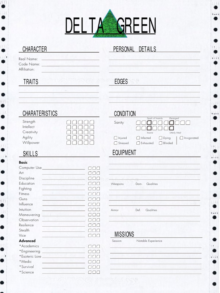 After the session, add 1d4 to each checked skill and erase all checks. I've replicated the character sheet for delta green in google sheets. It has some basic automation, check boxes and the like. I’m gathering links to all the character sheets i can find. Quickstart rules with demo scenario (“last things last”) and pregenerated characters — pdf | paperback.