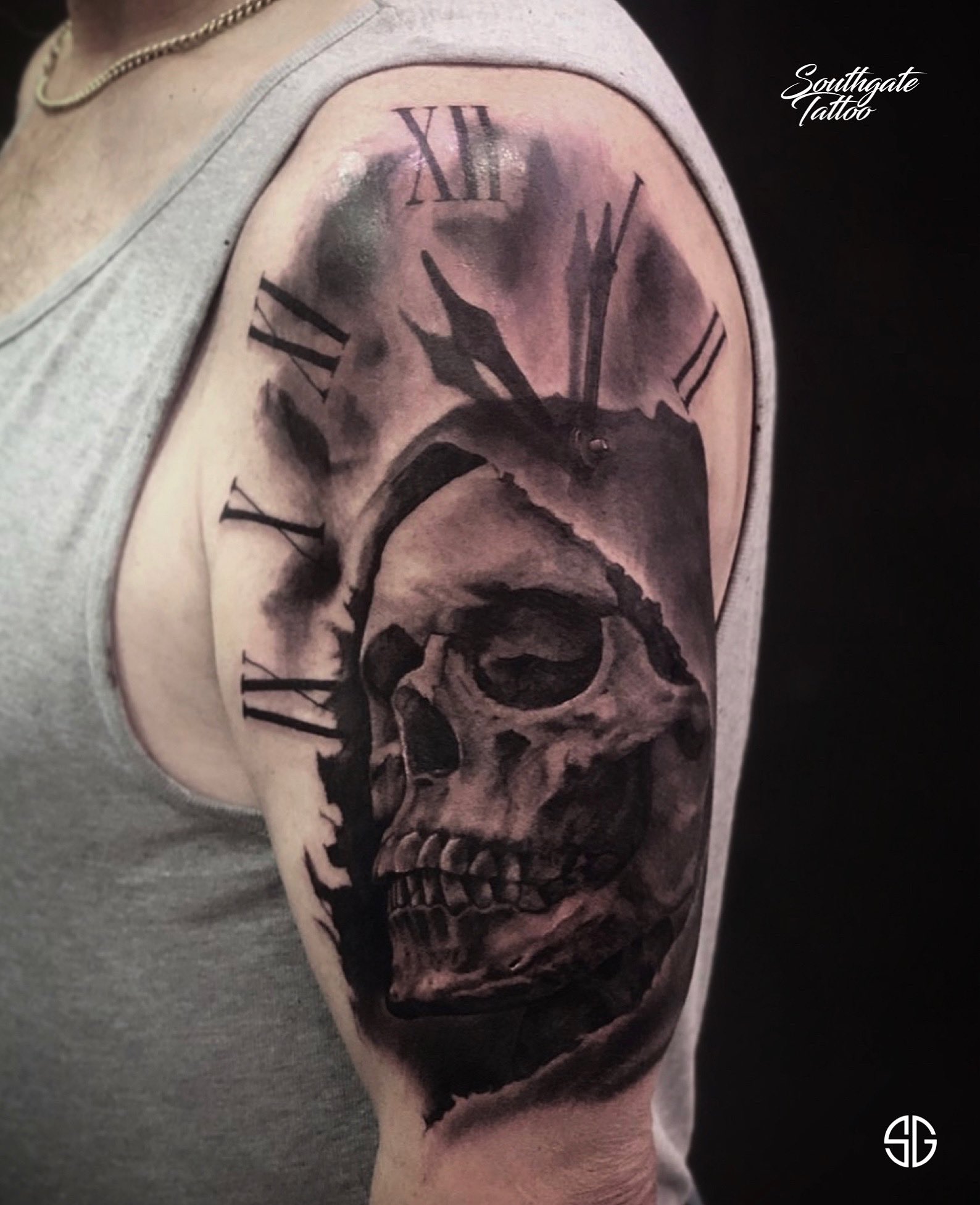 Grim Reaper clock tattoo Clock tattoo, Tattoos, Skull tattoo