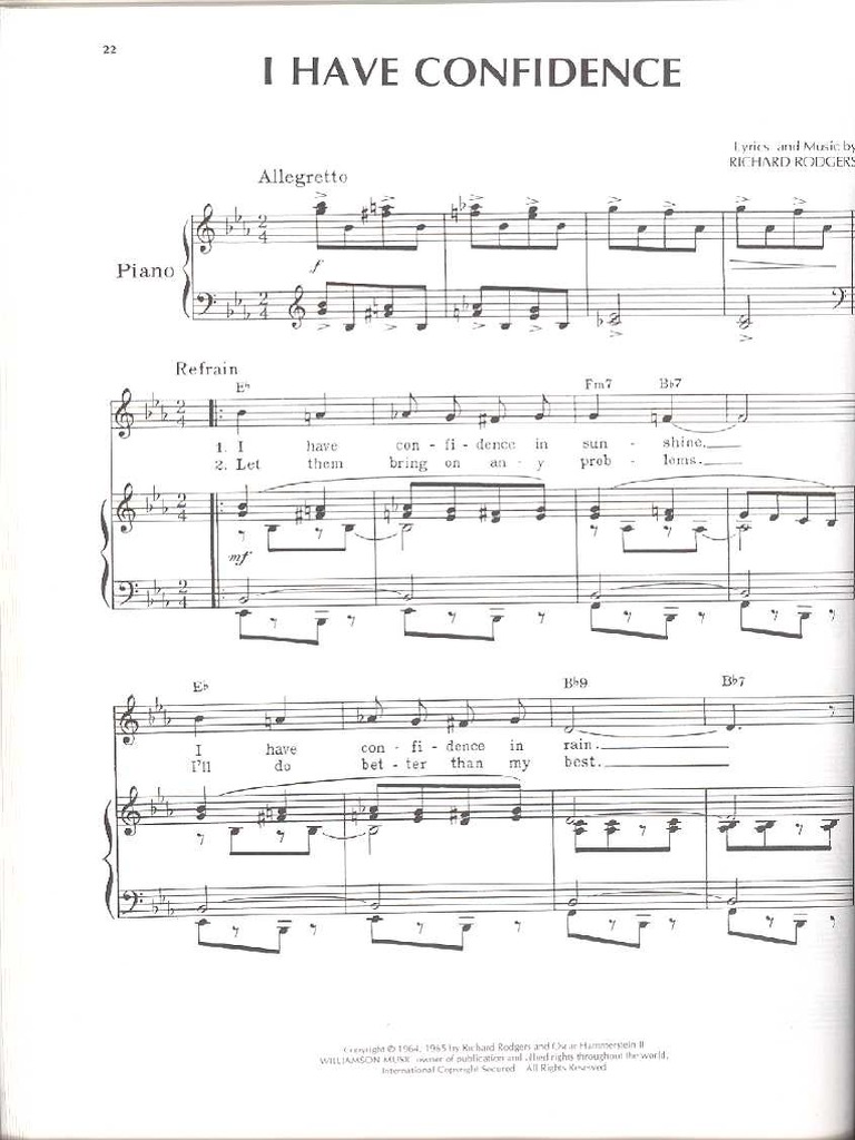 Browse our 9 arrangements of i have confidence. sheet music is available for piano, voice, guitar and 3 others with 10 scorings and. Download and print i have confidence (from the sound of music) sheet music for piano & vocal by rodgers & hammerstein from sheet music direct. The sound of music is a musical with music by richard rodgers,.