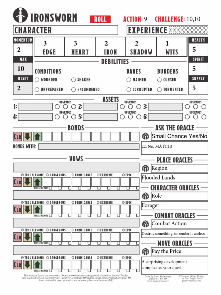 Character sheet design by eric bright from playeveryrole.com this work is based on ironsworn (found at www.ironswornrpg.com). Explore free downloads for the ironsworn family of games.