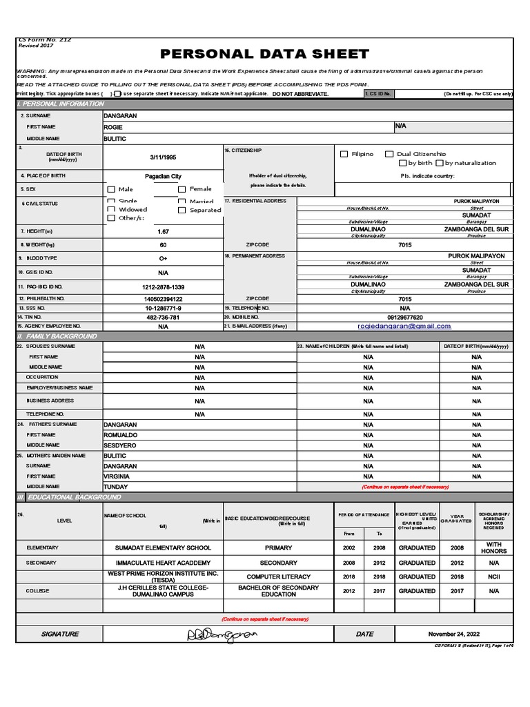 Personal Data Sheet PDF Teachers Vocational Education