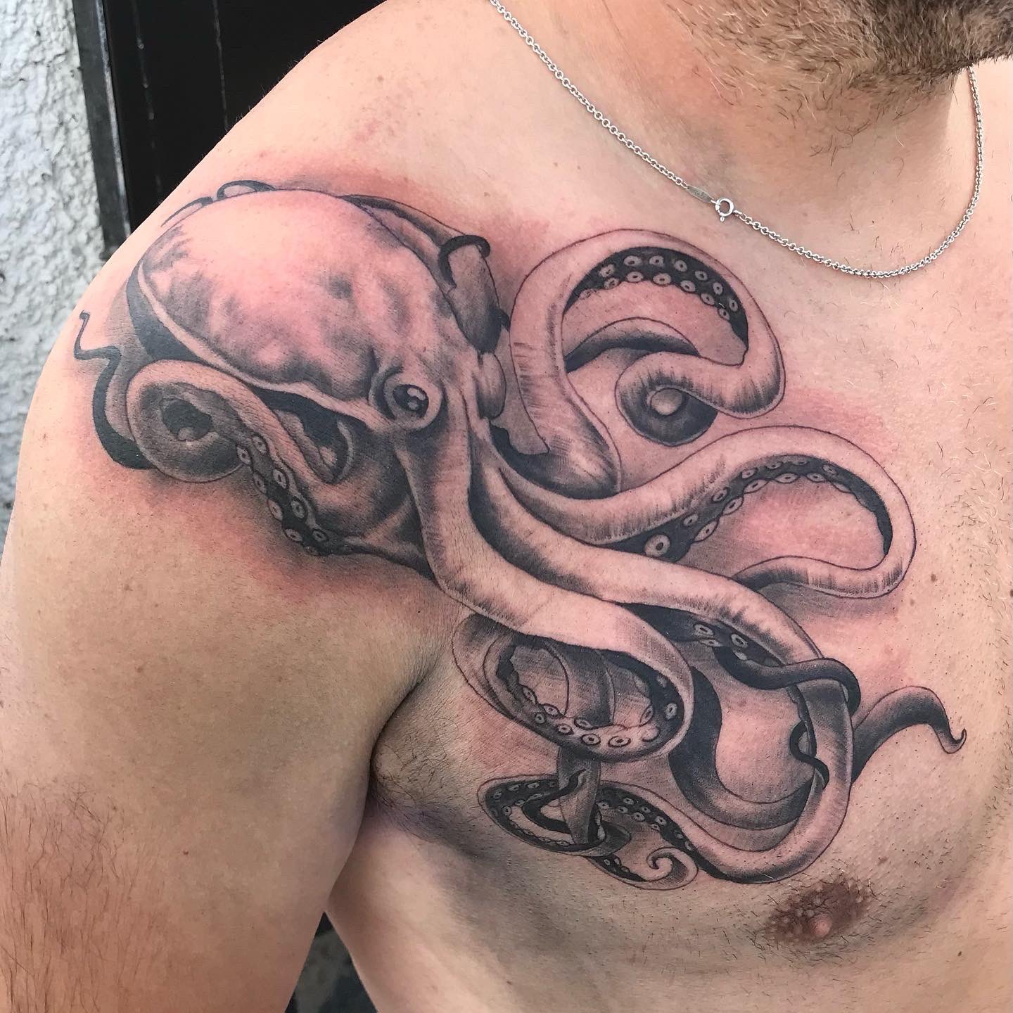 Kraken chest piece done by Curtis Rushton at Blvckmoon Tattoos in