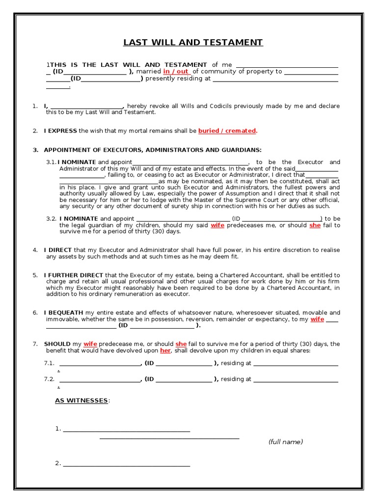 Joint Last Will And Testament Template South Africa Template 1