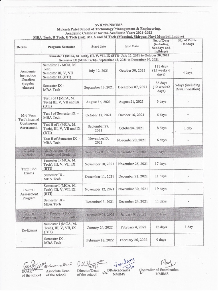 Academic CalendarAll Programmes II To V Yr. & For MCA & M TechI Yr