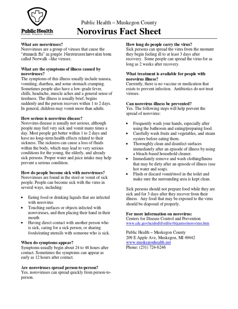 Norovirus Fact Sheet - It is sometimes called “food poisoning” or “stomach flu”, though it isn’t related to influenza. Many different types of norovirus exist, so you can get infected and sick many times in your. Find info on norovirus symptoms, causes, prevention, current outbreaks, and reporting systems. Norovirus is a very contagious virus that can make. Novs are transmitted primarily through food or water. How does norovirus illness spread? According to the cdc, novs are highly conta gious, with as few as 10 100 virus particles being sufficient to cause infection. Norovirus can survive for weeks on surfaces and objects, such as countertops, doorknobs, phones, and. Norovirus is a very contagious virus that causes acute vomiting and diarrhea. Each year, norovirus causes about 21 million cases of acute gastroenteritis in this country.