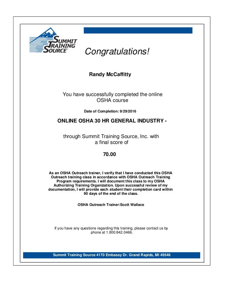 Osha 30 General Industry Final Exam Answers Osha Certificati