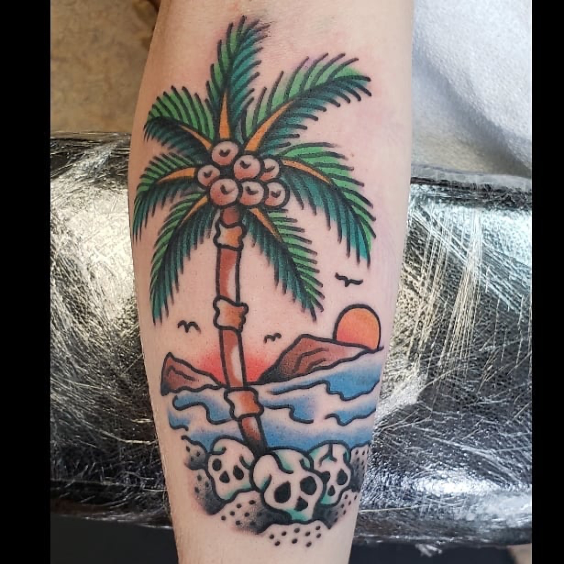 Palm Tree Island Tattoo - 🌴 from serene beach scenes to minimalist. They come in many styles—from simple lines to. Escape to the tropics with over 30 palm tree tattoo ideas, bringing a touch of paradise to your skin! Do you want to get a palm tree tattoo? These tattoos show a strong bond with nature and remind you of happy times near the ocean.