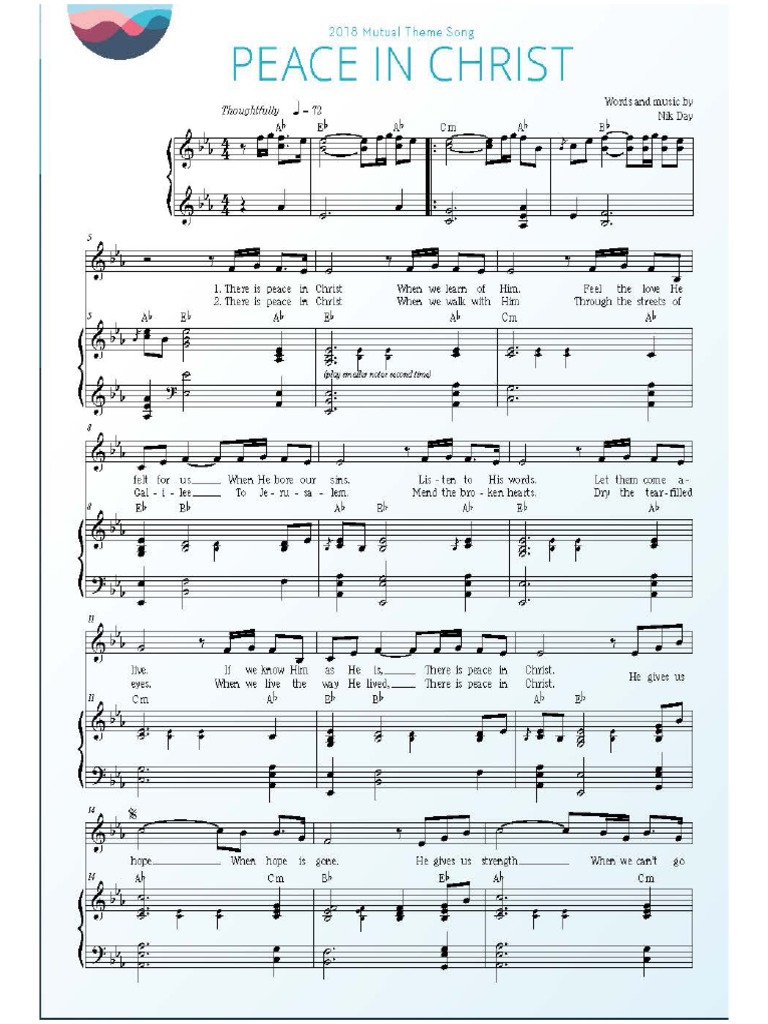 Peace in christ 2018 mutual theme song 5 nik day arranged by carter larsen 10 15 20 This song is based on the scripture doctrine. Download or print the sheet music for peace in christ (male version) from the 2018 youth album. Christ when there’s no peace on d earth, !ere is peace in g a christ.