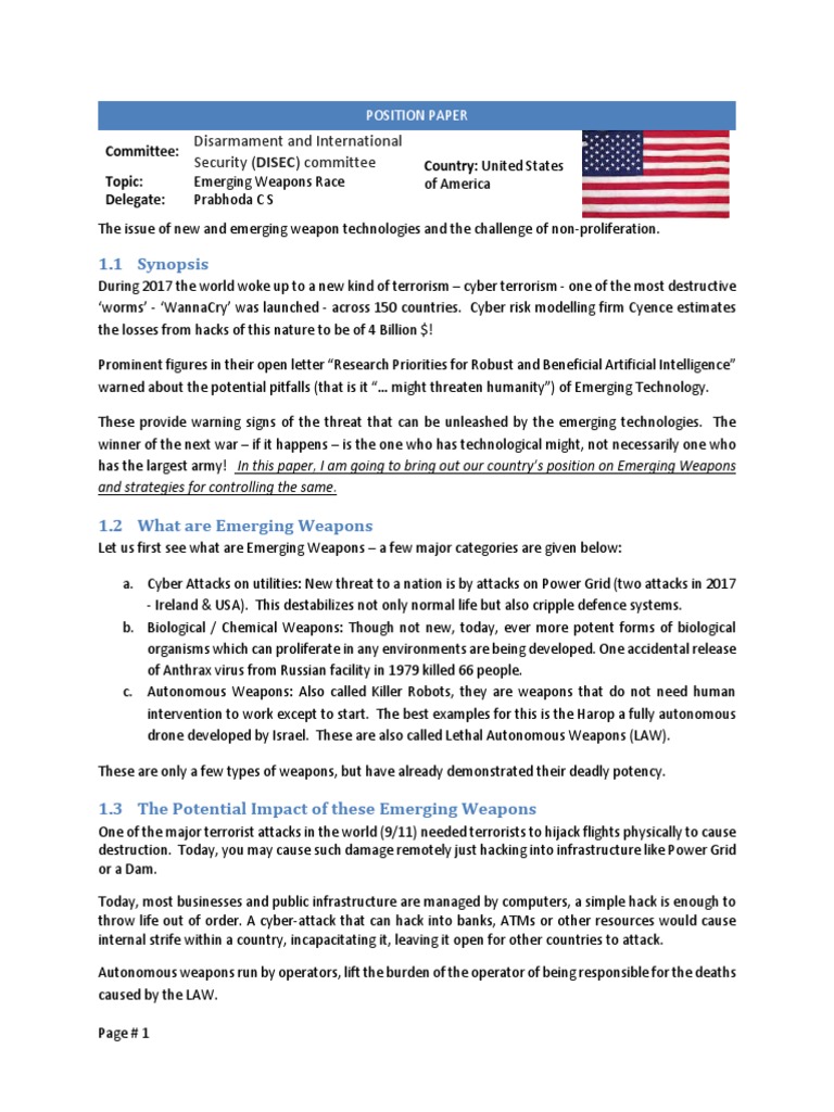 The position paper should be the most careful element in the mun. The position papers submitted here are formal, public statements of a delegation’s position on. This paper exhibits excellence in research and critical thinking for the realm of a crisis.