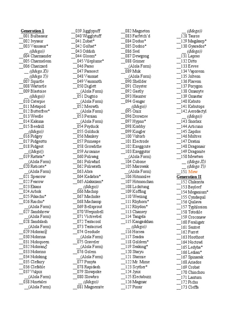 Pokemon Printable Checklist Generations 1 7 802 by Firesquiiidsd71axoj