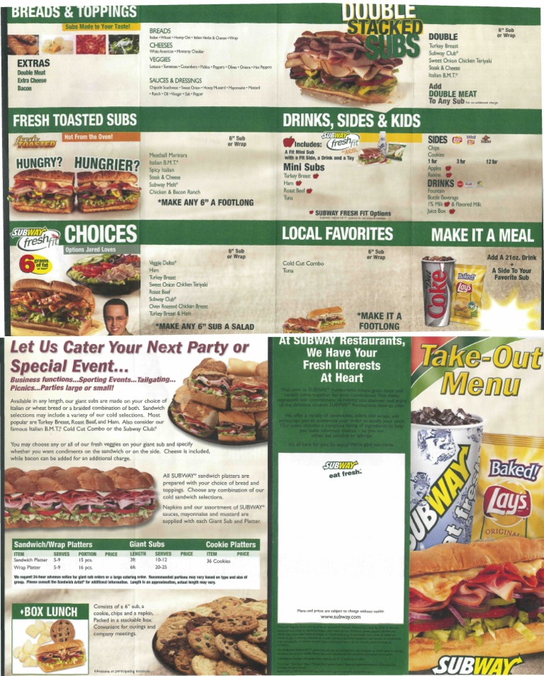 Subway® catering has everything you need to make your event a delicious success. Subway menu with prices for sandwiches, wraps, salads, and more. This is the complete subway menu with prices for 2025. Navigate through a variety of. #11 subway club® 263 500 24 8 1 75 1540 43 4 8 5 31 20 15 10 20 275 600 34 10 1 75 1290 43 6 7. 2022 12 irresistiblesubs new order by we'll do.