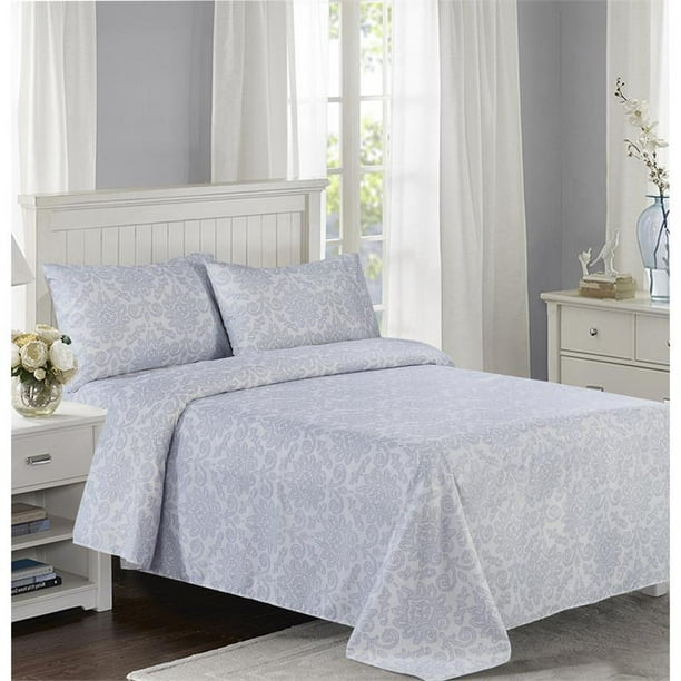 4pc Microfiber Sheet Set Printed Gray Floral Queen Size