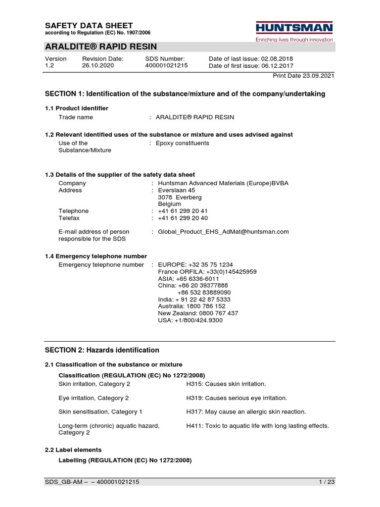 Araldite® Rapid Resin Safety Data Sheet PDF Toxicity Firefighting
