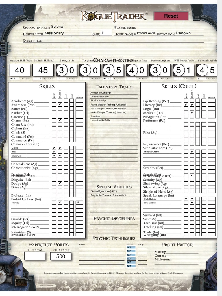 Form Fillable Rogue Trader Character Sheet Printable Forms Free Online