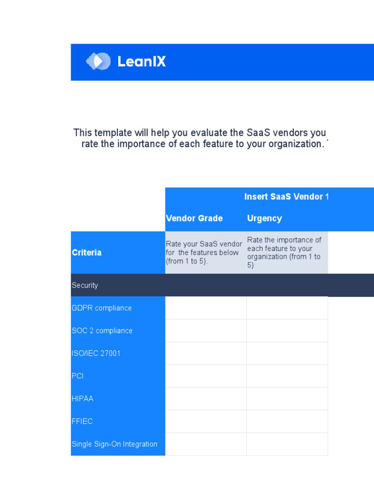 Evaluate SaaS Applications Criteria & Matrix Template LeanIX