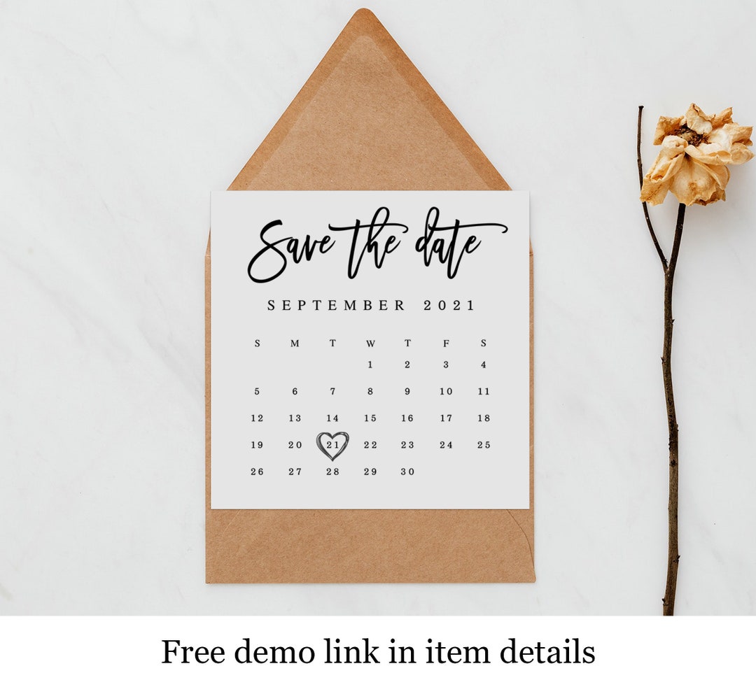 Calendar Save the Date Template, Try Before You Buy, Edit With Templett