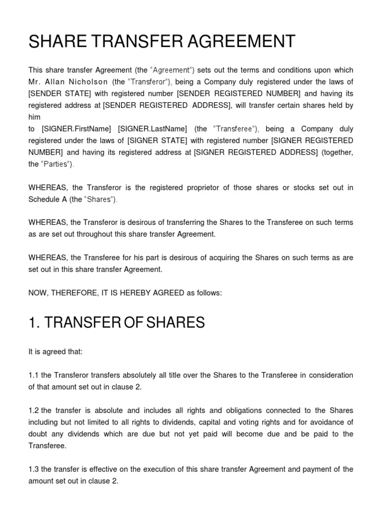 Share Transfer Agreement Template