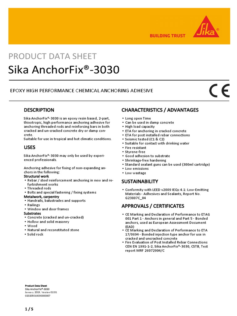 Sika Anchorfix®3030 Product Data Sheet PDF Drill