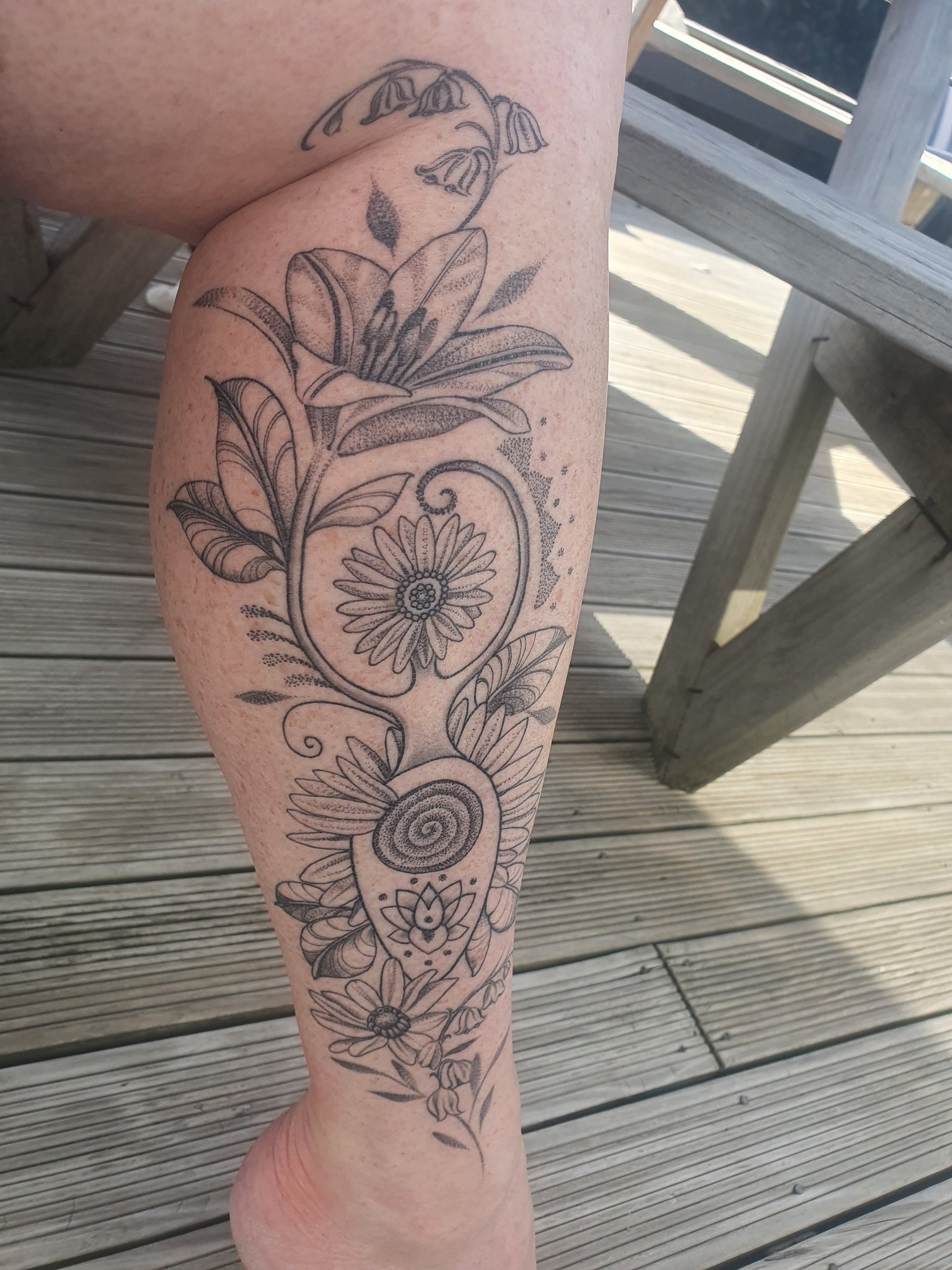Spiral Goddess Cover up tattoo left shoulder Tattooist Elijah Olson