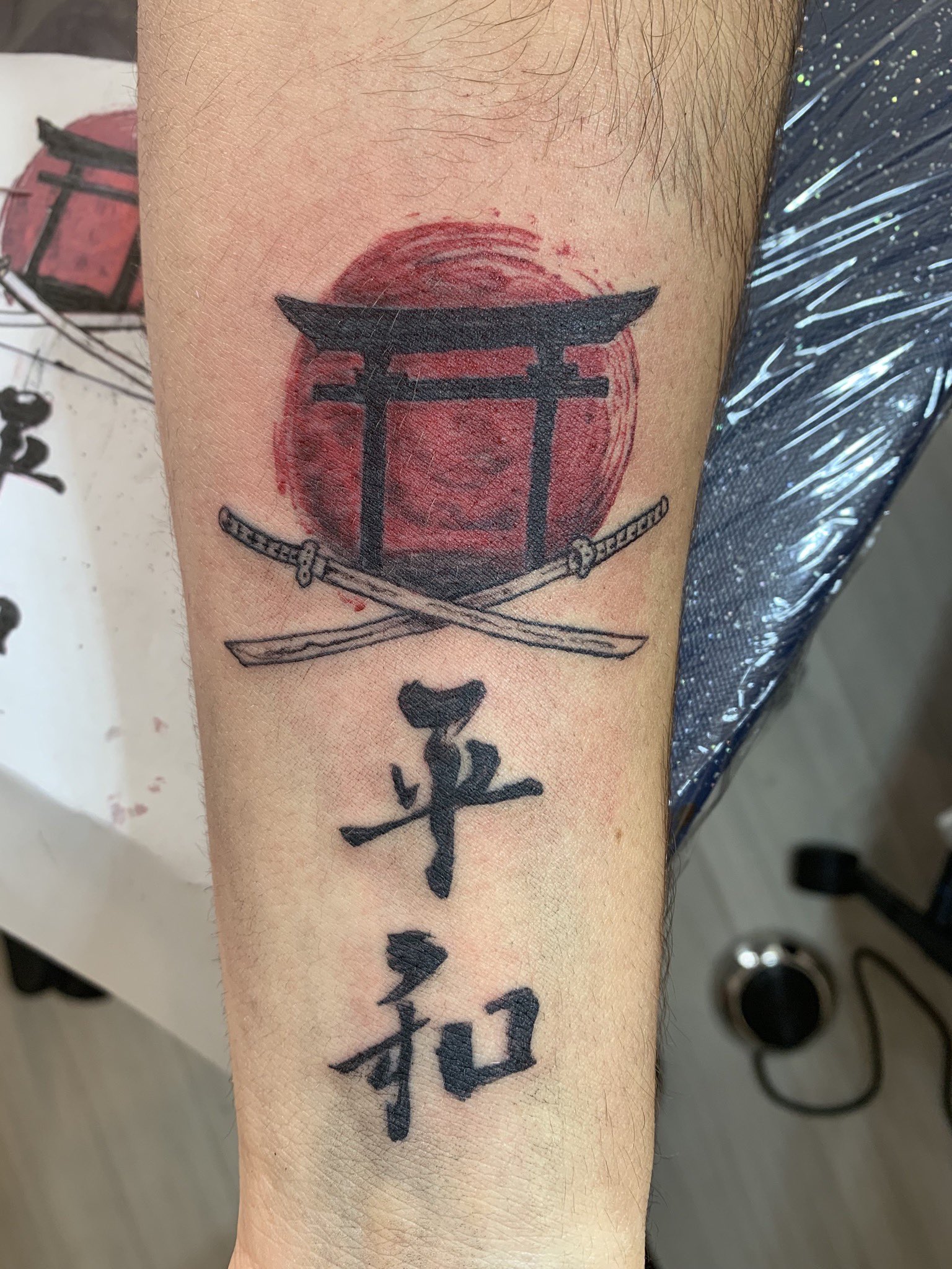Torii gate in Brash stroke His first tattoo from NYC tato… Flickr