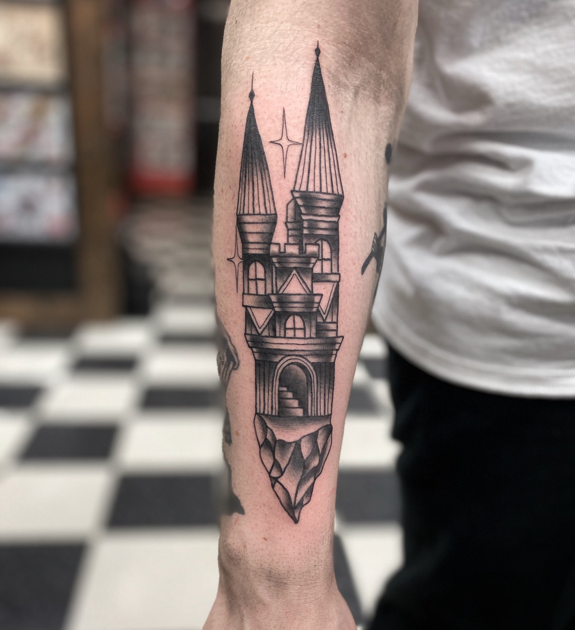 Tattoo uploaded by Tattoodo Castle tattoo by Paul Dobleman