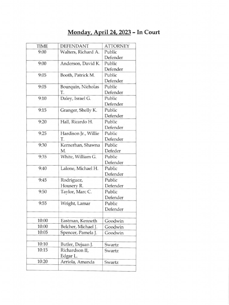 Jefferson County Court Calendar April 24, 2023 PDF
